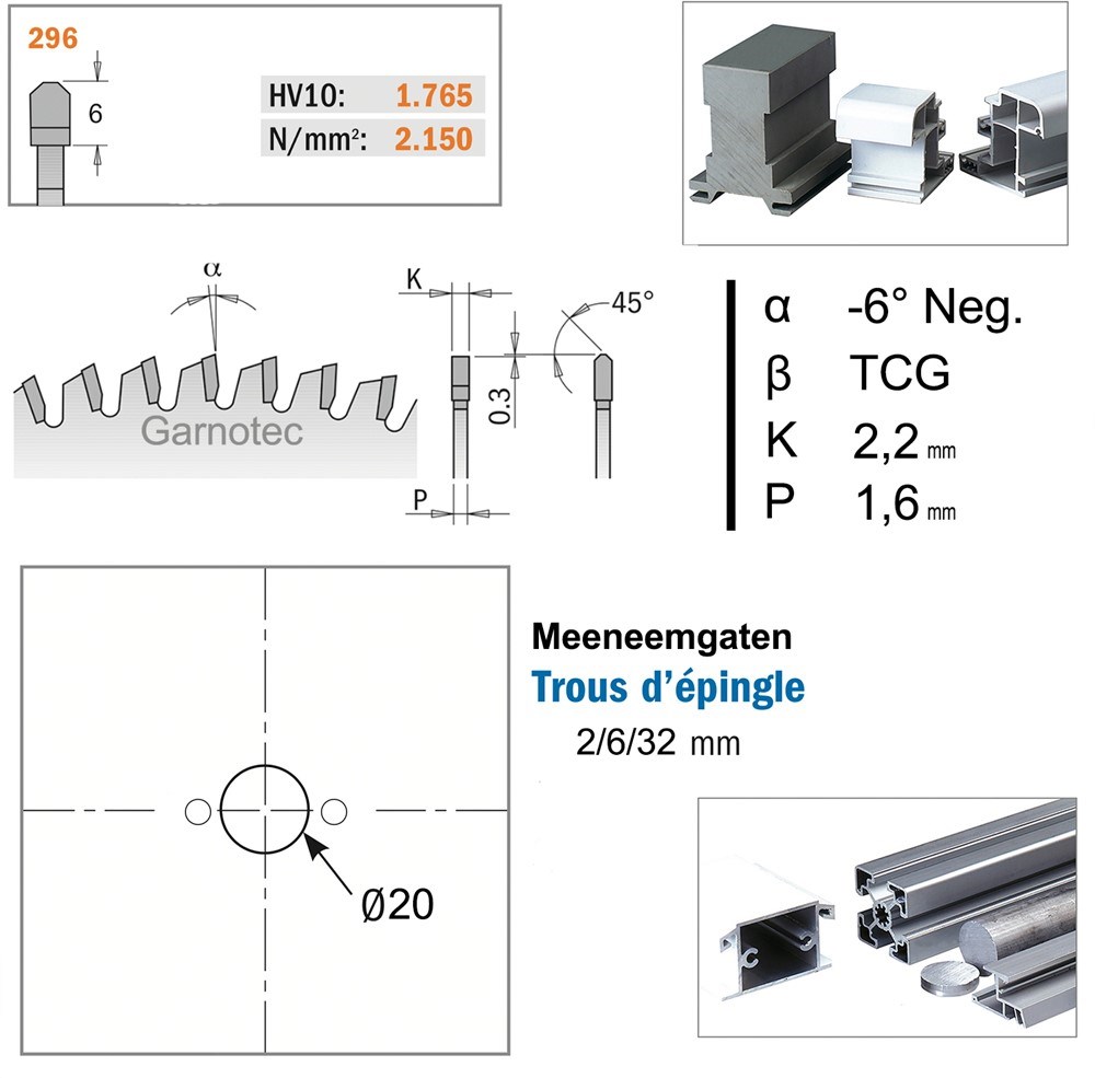 Materiaal: aluminium, dun messing, dunne koperlegeringen, kunststof, composieten, beplakt plaatmateriaal.